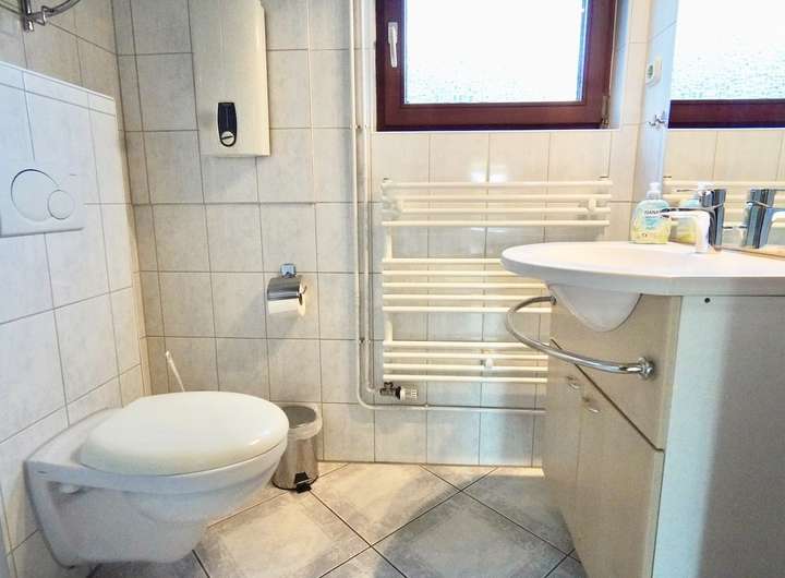 • Ein Badezimmer mit integrierter Infrarotsauna
