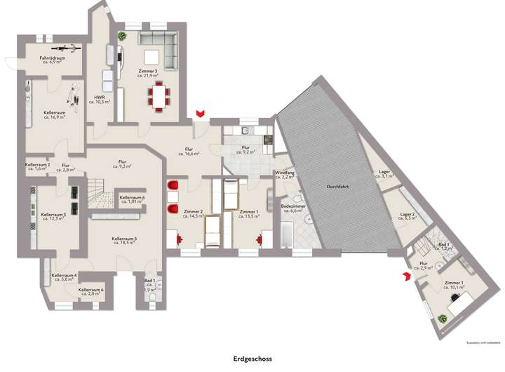 Mit einer Wohnfläche von ca. 510 m² und sechs Ein- bzw. Zugängen eröffnet das Haus vielfältige Nutzungsmöglichkeiten. Ob als großzügiges Mehrfamilienhaus, stilvolles Mehrgenerationenhaus, Gewerbegebäude oder individuelle Eigentumswohnungen – mit einem durchdachten architektonischen Konzept lässt sich dieses Gebäude zu einem wahren Immobilienjuwel entwickeln.