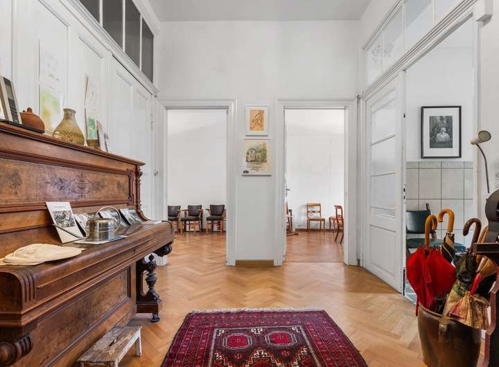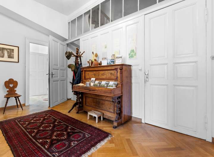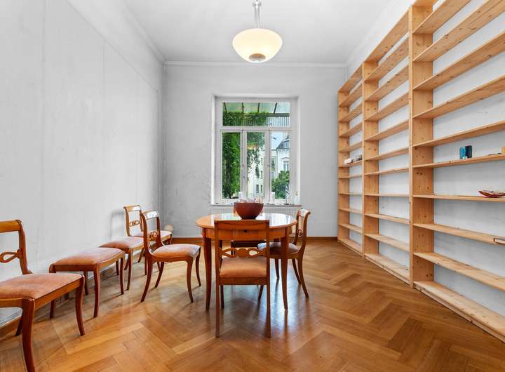 Bereits heute beeindrucken zahlreiche originale Elemente wie prachtvolle Stuckfassaden, hohe Decken, Echtholztreppen sowie original erhaltene Parkett- und Dielenböden. Der historische Terrazzoboden im Erdgeschoss ist ebenfalls positiv hervorzuheben. Die Substanz des Hauses ist solide. Ein weiteres Highlight ist der großzügige Garten – ein seltener Luxus in dieser urbanen Lage und eine grüne Oase mit viel Potenzial zur individuellen Gestaltung.