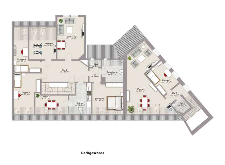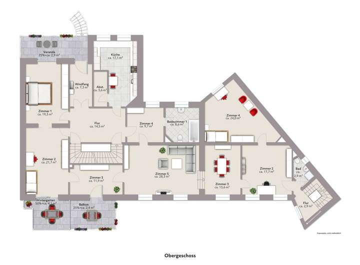 • Bäder: 4 Badezimmer sowie 4 Gäste-WCs