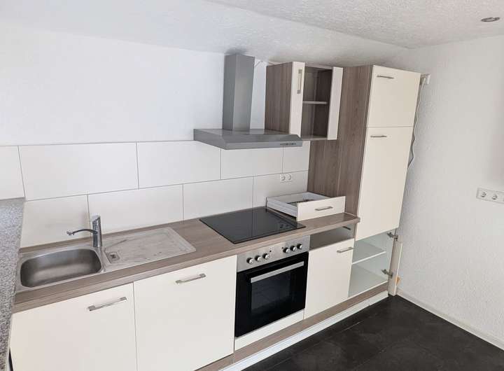 Besonderes Highlight ist die offen gestaltete Küche, die durch eine kleine Theke/Bar optisch in den Essbereich übergeht. Hier lassen sich in gemütlicher Atmosphäre Mahlzeiten einnehmen oder gesellige Stunden verbringen. Die Einbauküche ist modern ausgestattet und bietet alles, was man für den Alltag benötigt.