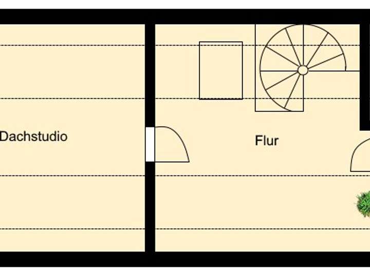 Im Dachgeschoss gibt es ein Dachstudio, ein separates WC und einen beide Räumlichkeiten verbindenden Flur.