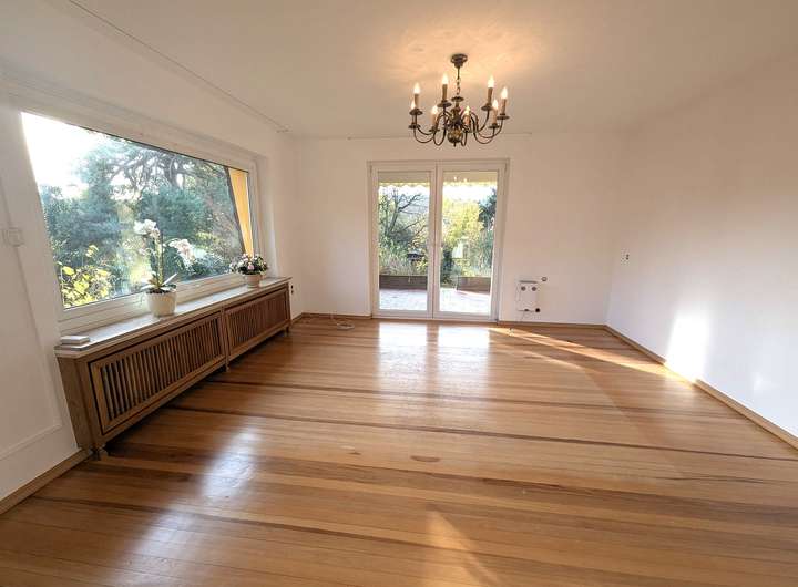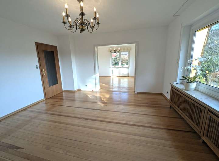 Im EG befindet sich in Wohn- und Esszimmer Echtholzboden.