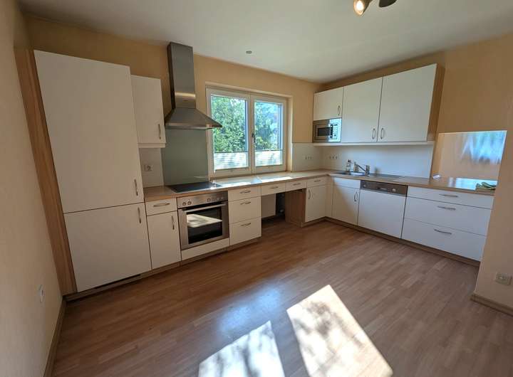 Die Küche im EG ist mit Küchenmobiliar und -geräten voll ausgestattet.