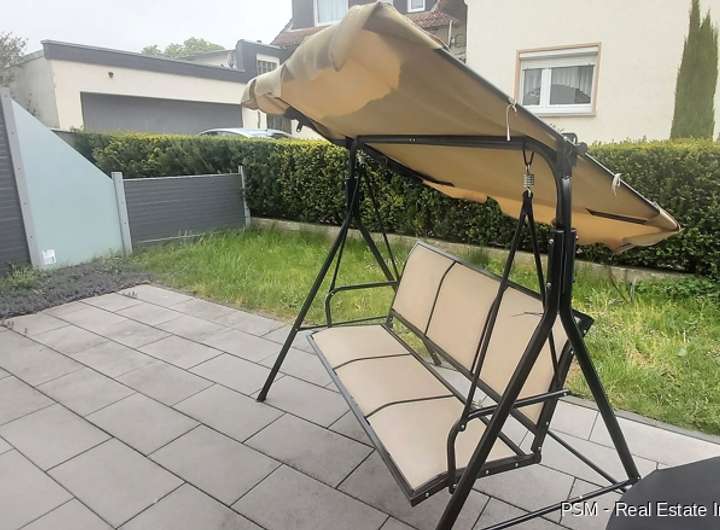 Von da aus gelangen Sie direkt zur schönen großen Sommerterrasse (20 M²) mit Garten.