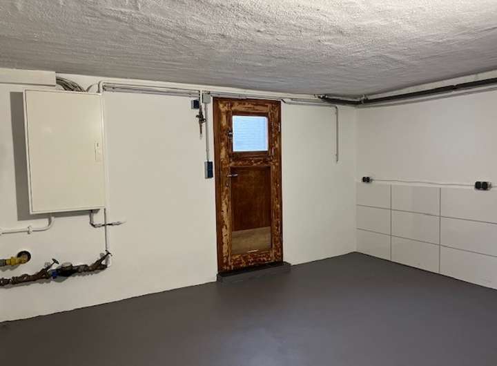 Im Souterrain befinden sich ein modernes Badezimmer sowie ein großer Abstellraum mit allen Hausanschlüssen. Ein separater Außeneingang führt direkt zur Terrasse und in den Garten.