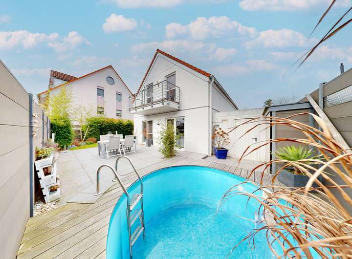 Dieses Einfamilienhaus verbindet zeitgemäßes Wohnen mit behaglichem Ambiente und liegt in einer ruhigen Anwohnerstraße der Fürther Nordstadt. Große Fenster sorgen für viel Licht im Wohnbereich, während eine großzügige Terrasse mit direktem Gartenzugang zum Verweilen einlädt. Ein besonderes Highlight ist der private Wellnessbereich im Untergeschoss.