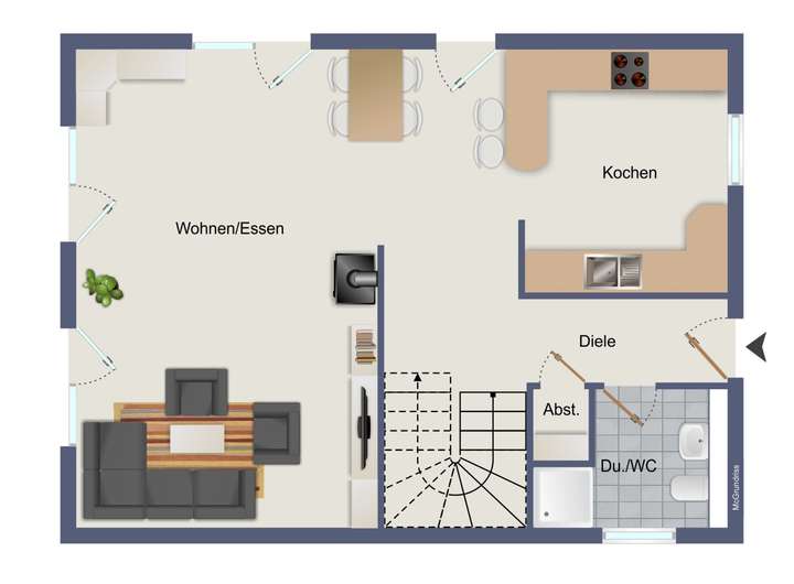 * Im Erdgeschoss befindet sich ein Tageslichtbad mit Dusche