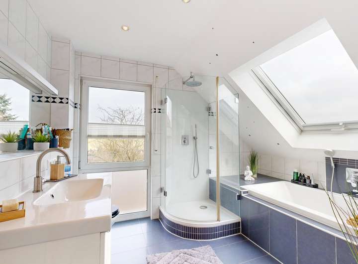 * Hauptbadezimmer mit Wanne und Dusche im Obergeschoss