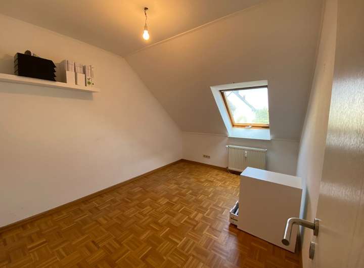 Diese großzügige Dachgeschosswohnung verbindet gemütlichen Charme mit einer durchdachten Raumaufteilung. Mittelpunkt des Zuhauses ist das helle Wohnzimmer, das mit seiner freundlichen Atmosphäre zum Entspannen und Wohlfühlen einlädt. Neben dem Schlafzimmer stehen zwei weitere, etwas kleinere Zimmer zur Verfügung – eines davon bietet sich ideal als begehbarer Kleiderschrank mit viel Stauraum an, während das andere perfekt als ruhiges Homeoffice genutzt werden kann.