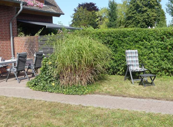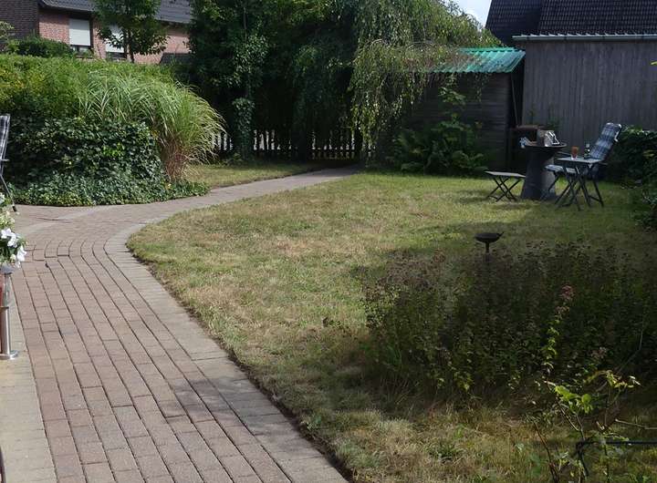 Auch der Außenbereich überzeugt: Ein Carport bietet Schutz für das Fahrzeug, während eine idyllische Gartenlaube und ein liebevoll angelegter Garten mit Blumenbeeten und Rasenflächen zum Verweilen einladen. Hier lässt sich der Alltag wunderbar entschleunigen – sei es bei einem Frühstück auf der Terrasse, beim Gärtnern oder beim entspannten Lesen in der Gartenliege.