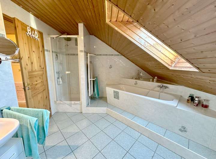 großzügig geschnitten und bietet sowohl eine Badewanne als auch eine separate Dusche - ideal für entspannte Abende oder den schnellen Start in den Tag.