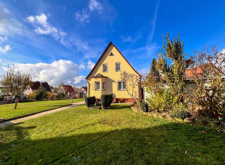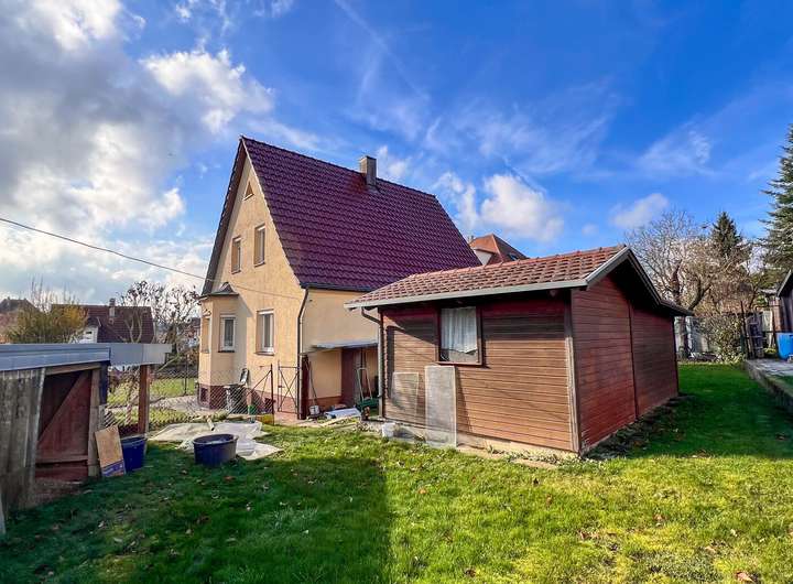 Dieses charmante Einfamilienhaus bietet auf rund 93m² Wohnfläche, vielfältige Gestaltungsmöglichkeiten für individuelle Wohnträume. Das Haus befindet sich auf einem großzügigen Grundstück der viel Platz für Erholung, Familie und Gartenliebhaber bietet. Zusätzlich stehen eine Garage, ein Keller und eine große Gartenhütte zur Verfügung - ideal für Hobby Handwerk oder einfach zusätzlichen Stauraum.