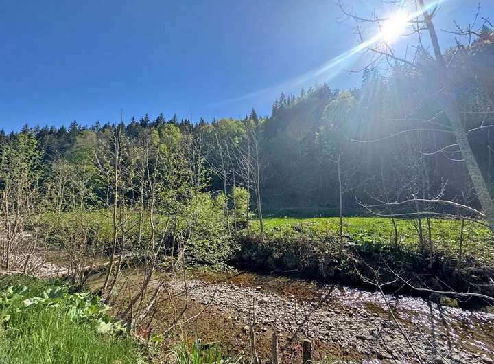 Kreuzthal, ein paradiesisch gelegenes Tal im Allgäu, ist ein ruhiger und naturnaher Ort, der trotz seiner ländlichen Lage eine gut entwickelte Infrastruktur bietet. Auf etwa 800 Metern Höhe gelegen, durchfließt die glasklare Eschach das Tal. Auf der einen Seite des Flusses liegt der Landkreis Ravensburg, auf der anderen das Kreuzthal, das damit zum bayrischen Buchenberg im Oberallgäu gehört. Die Städte Kempten, Leutkirch und Isny sind nur etwa 20 Kilometer entfernt.