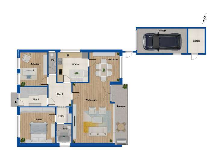 Das Haus ist voll unterkellert und bietet somit viel Platz für Hobby, Vorräte oder Stauraum. Das rund 1.173 m² große Grundstück ist ein echtes Highlight – hier können Kinder unbeschwert spielen, während die Erwachsenen auf der Terrasse oder im Garten den Feierabend genießen. Eine Garage mit elektrischem Tor rundet das Angebot ab.