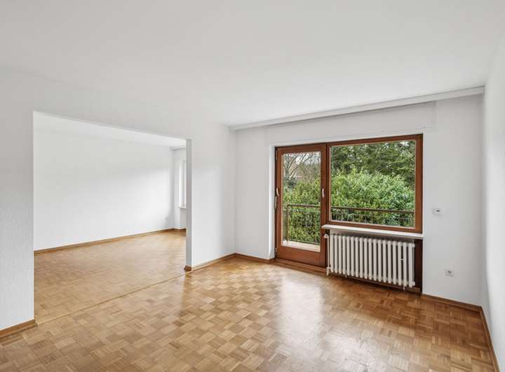 Die Wohnung im Dachgeschoss bietet ca. 84,77 m² Wohnfläche und beeindruckt mit einem lichtdurchfluteten Wohnbereich sowie direktem Zugang zum sonnigen Balkon – perfekt für entspannte Stunden im Freien. Zwei Schlafzimmer, eines davon ebenfalls mit Balkonzugang, eine separate Küche und ein modernes Duschbad machen diesen Bereich zu einem eigenständigen, komfortablen Zuhause und ist somit ideal für erwachsene Kinder, Großeltern oder als großzügige Wohnetage für die Familie.