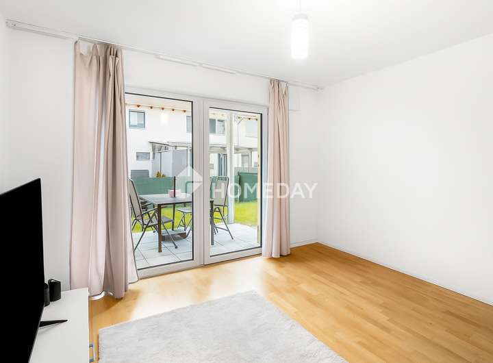Die nach Westen ausgerichtete Terrasse mit einem angrenzenden Gartenanteil von ca. 23 m² lädt zu entspannten Stunden im Freien ein – sei es beim Frühstück in der Morgensonne oder beim gemütlichen Ausklang des Tages. Der private Garten bietet ausreichend Platz für Pflanzen, Gartenmöbel oder eine kleine Ruhezone und ist ideal für alle, die das Leben im Freien schätzen.