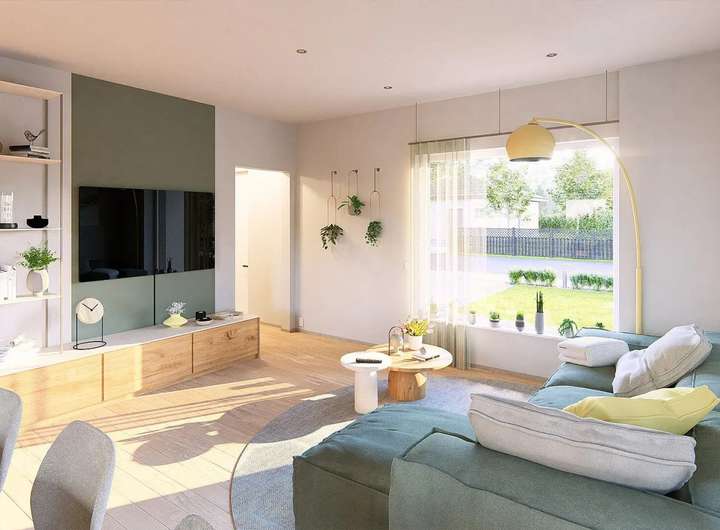 Im zentralen Wohn-, Ess- und Kochbereich fließen die Funktionen ineinander - hier entstehen Momente des Miteinanders ebenso wie Raum für Ruhe. Das Schlafzimmer bietet einen geschützten Rückzugsort, ergänzt durch ein flexibles Zimmer, das sich neuen Lebenssituationen anpasst. Ein modernes Bad und ein praktischer Hauswirtschaftsraum runden das Konzept ab. So entsteht ein Ort, der mit seinen Bewohnern wächst und bleibt - beständig im Charakter, zeitlos im Design.