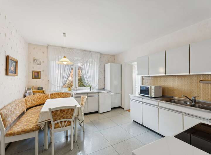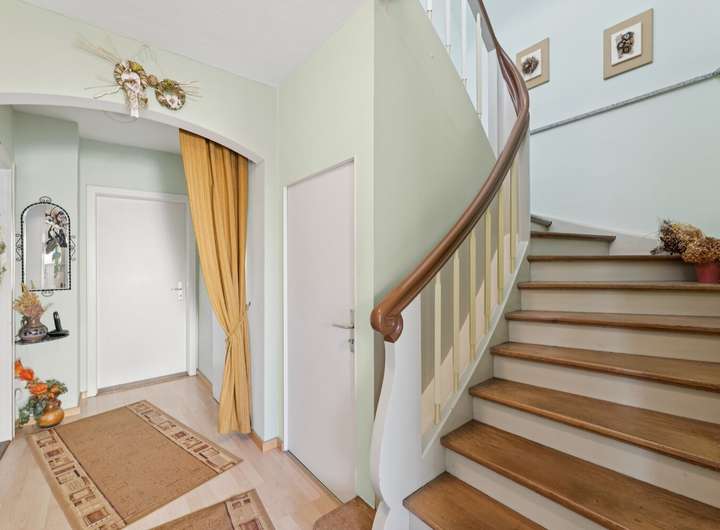 Insgesamt macht das Haus einen sehr gepflegten Eindruck. Die Kombination aus beständiger Instandhaltung und regelmäßigen Modernisierungen schafft ein angenehmes Wohnambiente. Die Immobilie ist in einem ordentlichen Zustand und steht sofort zur Verfügung. Dank der Bauweise und des Grundrisses kann sie sowohl als großzügiges Einfamilienhaus genutzt werden als auch in zwei separate Wohneinheiten aufgeteilt werden.