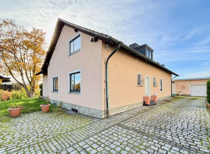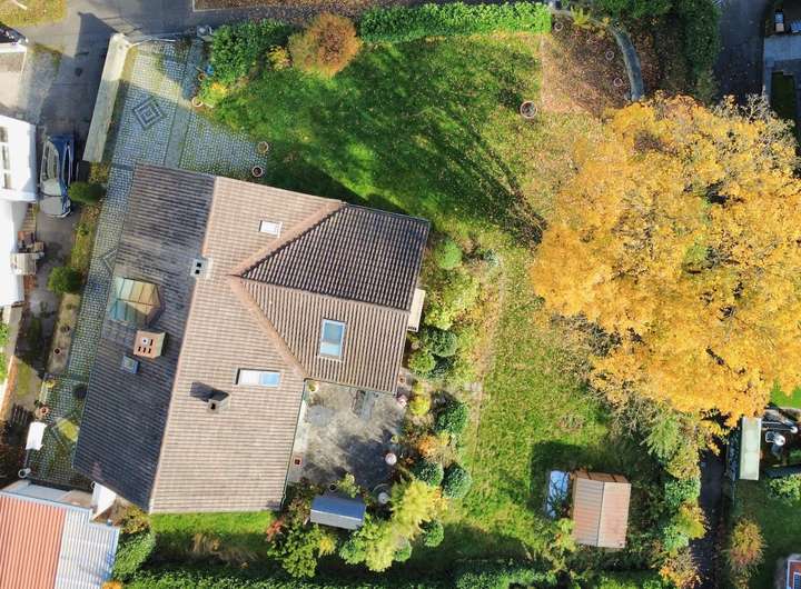Derzeit ist das Grundstück noch mit einem Einfamilienhaus und einer Garage aus den 1960er Jahren bebaut.