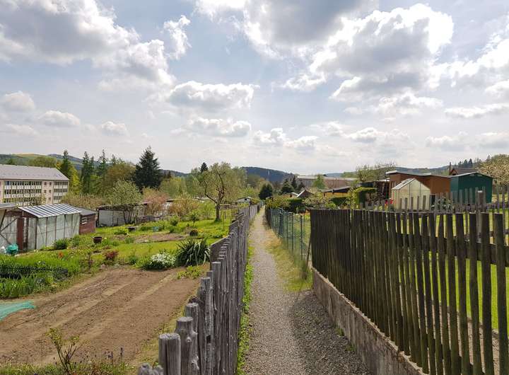 Das Grundstück liegt am Rande von Pockau und ist sehr sonnig, leicht abschüssig und verfügt über einen fantastischen Ausblick über das Tal. Die Gärten sind teilweise sehr gepflegt.