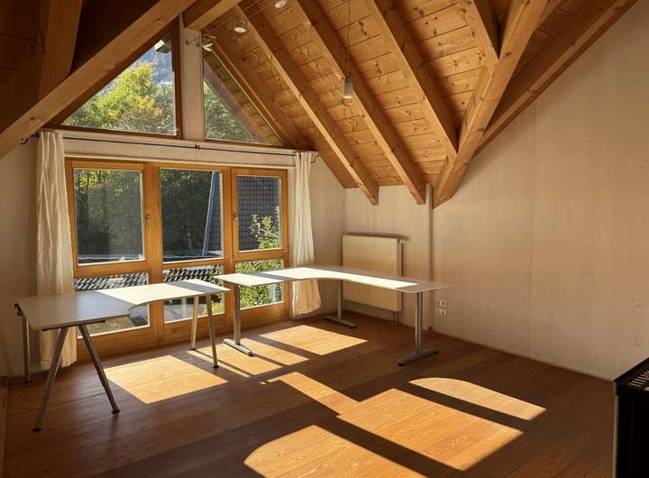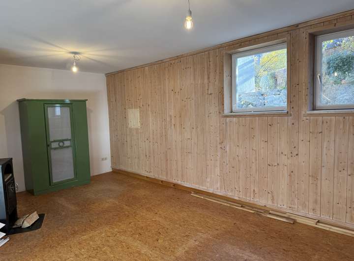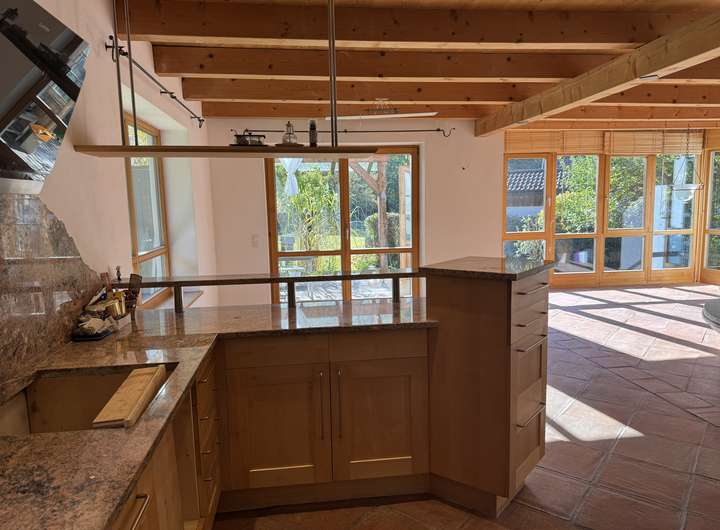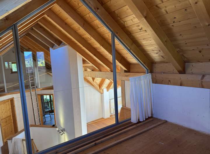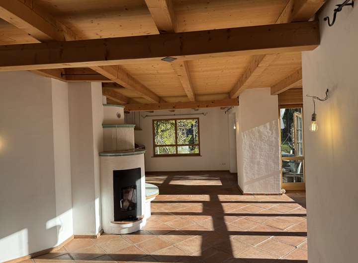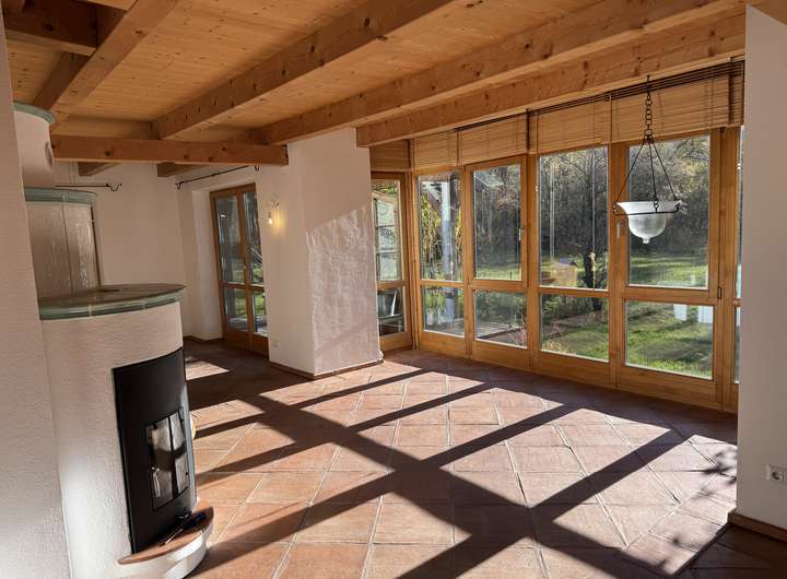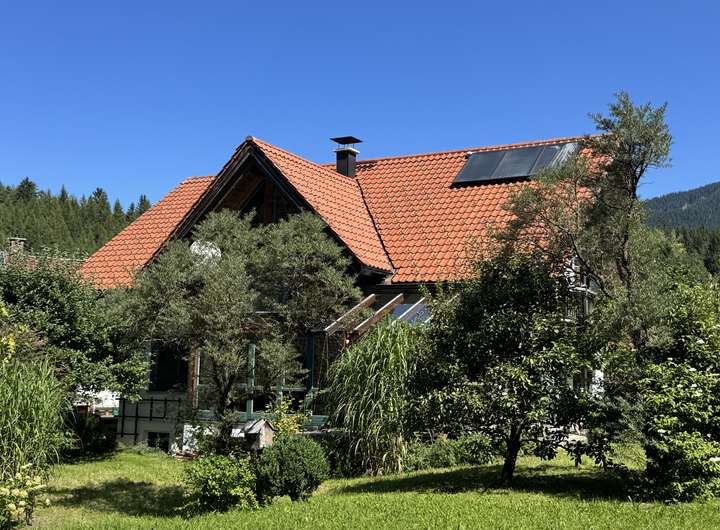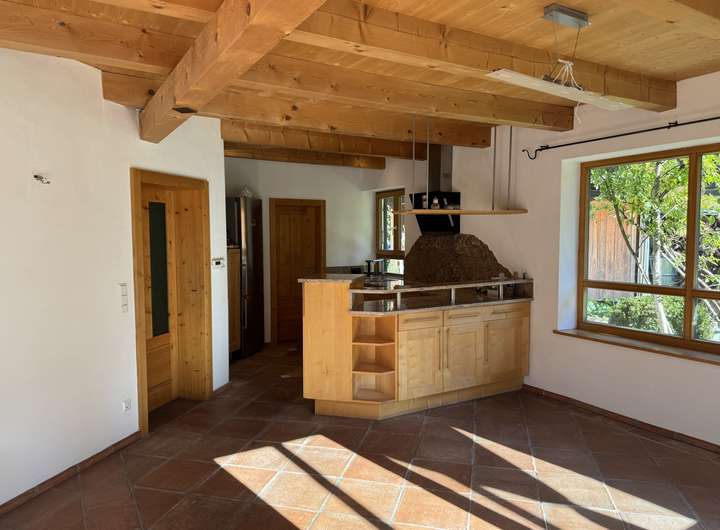 Wohnen im großen Stil……dann heißt Sie dieses außergewöhnliche Haus herzlich willkommen. Das hier vorgestellte Haus empfängt Sie mit einem durchdacht konzipierten Eingang und Garderobenbereich. Neben einem Zimmer welches sich sehr gut als Büro, Gäste oder Schlafzimmer eignet, steht Ihnen hier auch ein schönes Duschbad mit WC zur Verfügung. Kernstück dieses einmaligen Hauses ist der herrlich und äußerst hell gestaltete offene Wohn -Ess und Küchenbereich, von dem Ihnen auch möglich ist auf die vorgelagerte Bergblickterrasse herauszutreten. Ein echter Blickfang ist natürlich der sich herrlich in den Wohnbereich einfügende Kachelofen, der mehr als nur gelegentlich zum Verweilen einladen wird. Beim praktisch angelegten Küchenbereich bleibt zu erwähnen, dass dieser noch über eine separate Speisekammer verfügt. Über den imposanten Dielenbereich gelangen Sie in das Obergeschoss dieses großzügigen Hauses. Hier setzt sich die überaus interessante Konzeption dieses Haus natürlich fort. Ein fast schon zweiter offener und sehr heller Wohn oder Arbeitsbereich erwartet Sie hier und wie kann es anders sein …..natürlich auch mit einem gemütlich Wärmespenden Schwedenofen. Um diesen Bereich sind vier weitere Zimmer errichtet worden, wovon bei zwei Zimmern noch die Möglichkeit besteht auf eine Art verglaste Galerie zu gelangen, was allein schon ein Highlight für sich ist. Weiterhin haben zwei der Zimmer die Möglichkeit auf einen Balkon zu gelangen. Perfekt abgerundet wird diese Wohnebene durch ein großes Bad mit zwei Waschbecken, Badewanne und WC. Das Untergeschoss bietet aufgrund der kompletten Unterkellerung des Hauses auch noch einmal richtig viel Platz. Ein extra großer und hoher Kellerraum, der Heizungsraum und eine richtig geräumige Waschküche stehen Ihnen hier zur Verfügung. Komplettiert wird dieser Bereich des Hauses durch zwei klasse angelegte und vielseitig nutzbare Räume die das Wohnangebot und Platzangebot dieses interessanten Hauses ideal abrunden. Ein großzügiger Carport für zwei Autos und ein Gartenschuppen vervollständigen dieses großzügige Wohnangebot.