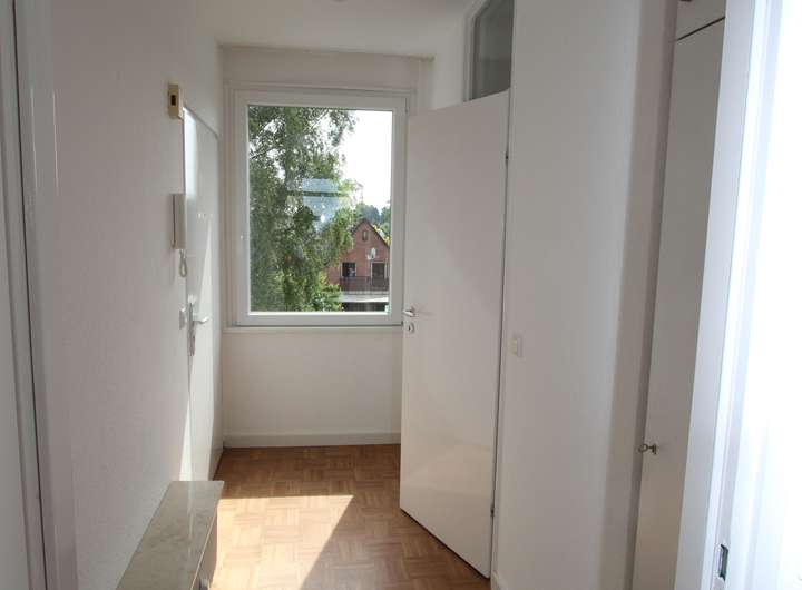 Die pfiffige, gut aufgeteilte Wohnung erreichen Sie über den Treppenhausflur mit integriertem Fahrstuhl. Von der Wohnungseingangstür betreten Sie den Flurbereich der Wohnung, der mit hochwertigem Holzparkettboden (Stäbchenparkett, „Machiche“ = „mexikanische/karibische Kirsche“) ausgestattet ist, wie auch die anderen Wohnräume der Wohnung. Garderobe und Schuhschrank finden hier bestens Platz, Gegensprechanlage und Türsummer für die Haustür sind hier ebenfalls vorhanden.