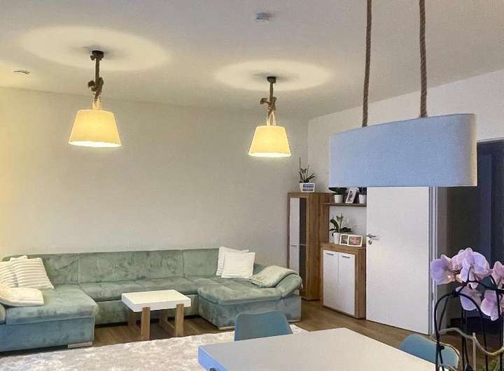 - Fußböden in Wohn-/Nebenräumen/Küche: hochwertiger Vinylboden