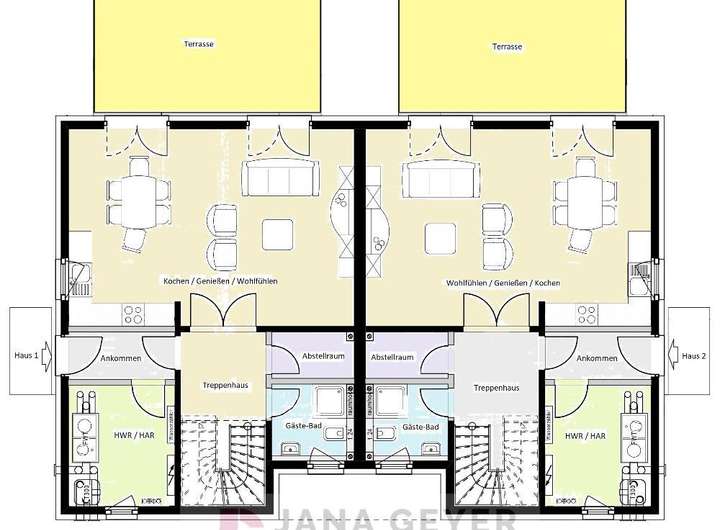 Das Doppelhaus wurde einer Bestandssiedlung errichtet und befindet sich derzeit in den letzten Zügen des Innenausbaus. Einige Bilder aus der Bauphase sind eingestellt. Die Fertigstellung wird bis Ende April erfolgen, so dass ab 01.05.2024 vermietet werden kann. Hier finden zwei Paare bzw. Familien genügend Platz zum Wohlfühlen. Das voll klimatisierte Fertigteilhaus steht seinen Mietern direkt nach Fertigstellung zur Verfügung. Sollten die Mieter bereits während der Bauphase gefunden werden, können diese noch Einfluß auf die Farbgebung der Vinylböden sowie malerischen Gestaltung der Wände nehmen.