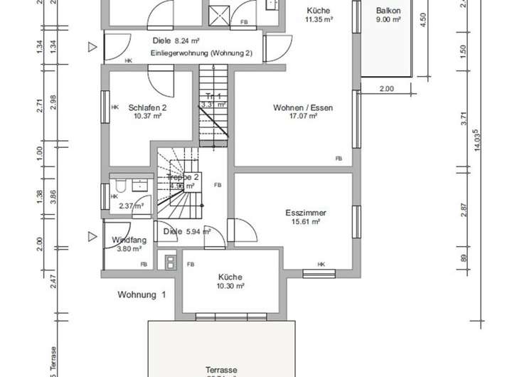 - Einliegerwohnung vermietet: € 400,00 Kaltmiete + € 155,00 Nebenkosten