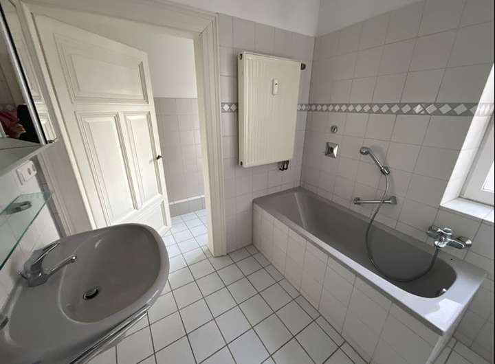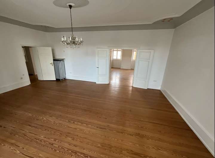 Die Wohnung überzeugt mit hohen Decken und kunstvollen Stuckverzierungen, die den Charme der Epoche bewahren.