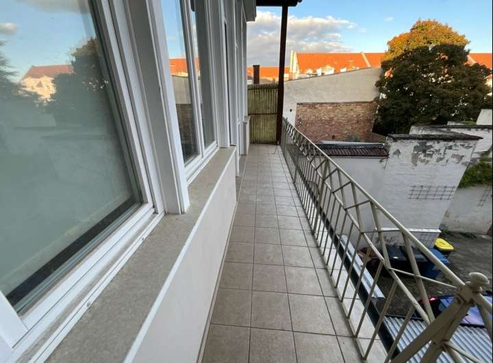 Ein Balkon lädt zum Entspannen im Freien ein.