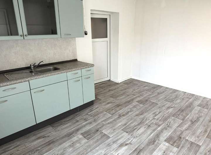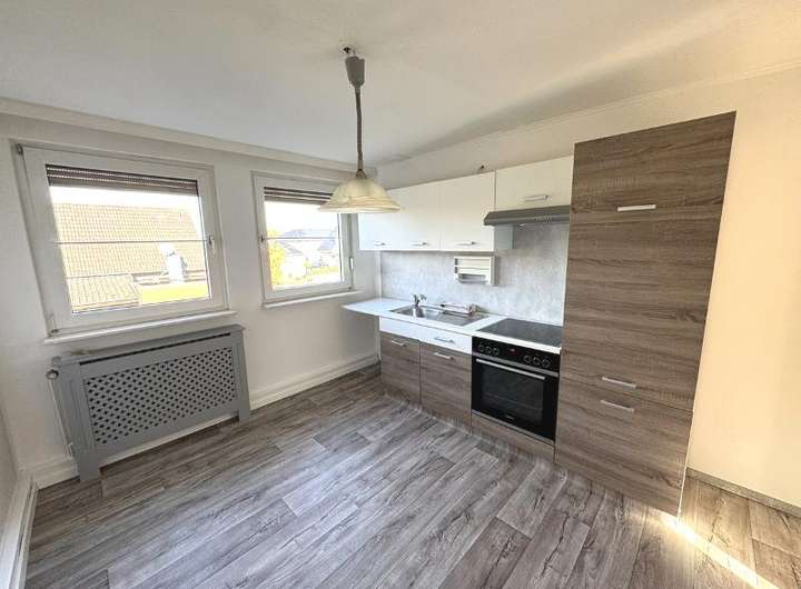 Windfang, Eingang, Flur, Wohnzimmer, Schlafzimmer 1, Küche mit Einbauküche, Badezimmer (saniert) mit ebenerdiger Dusche und Toilettenabtrennung,