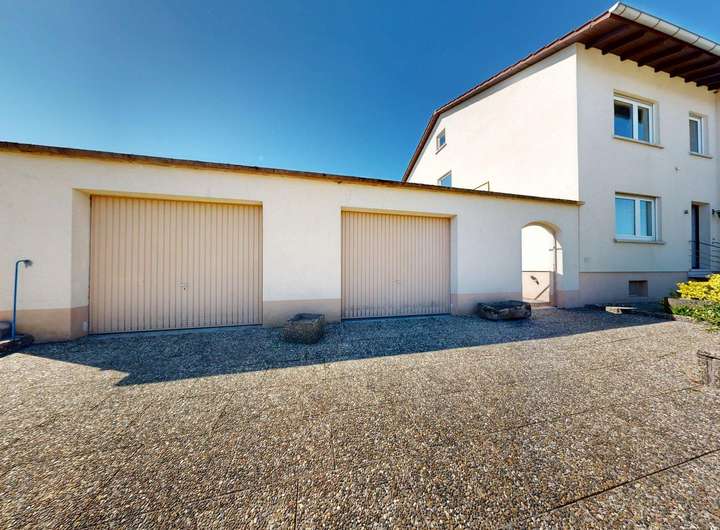 Das gepflegte Grundstück umfasst einen großen, repräsentativen Vorgarten sowie einen geschützten, kleineren Gartenbereich hinter dem Haus. Für Fahrzeuge stehen zwei Garagen, sowie zusätzliche Stellflächen zur Verfügung.