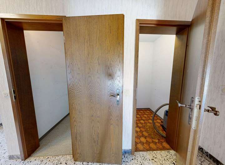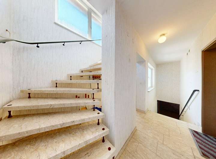 Über das separate Treppenhaus erreichen Sie das Obergeschoss, das sich durch seine durchdachte Raumaufteilung auszeichnet. Hier finden Sie drei große und ein kleines Schlafzimmer, ein zusätzliches Zimmer mit vorhandenen Küchenanschlüssen (ideal als zweite Küche), ein Badezimmer, ein Gäste-WC, eine kleine Abstellkammer, sowie einen gut geschnittenen Flur, der sich auch als Esszimmer eignen würde. Der Balkon ist vom Flur und einem Schlafzimmer aus zugänglich, bietet ausreichend Platz und lädt zum Verweilen ein.