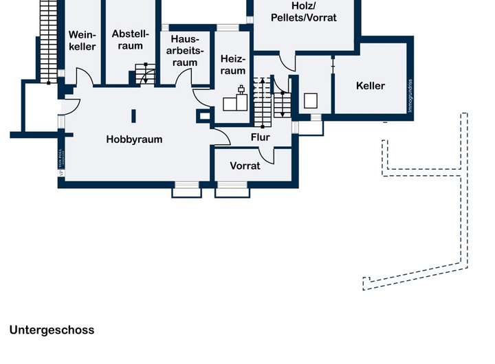 Das Haus ist unterkellert und bietet zahlreiche zusätzliche Flächen für Hobby, Lager oder kreative Nutzung. Neben einem großzügigen Hobbyraum mit zweiflügeliger, durch ein Schwenkgitter gesicherter Fenstertür und einem angrenzenden Hausarbeitsraum mit Dusche stehen ein Heizungsraum, ein Pelletlager und weitere Kellerräume zur Verfügung.