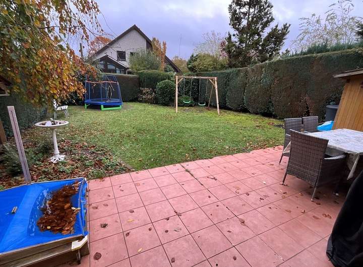 Das nach Süd/ Osten ausgerichtete Grundstück ist überwiegend eingefriedet und die umlaufenden Ziergehölze schützen vor Blicken der Nachbarn.