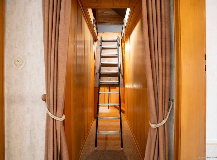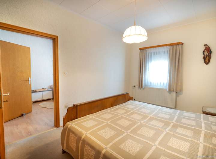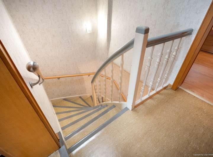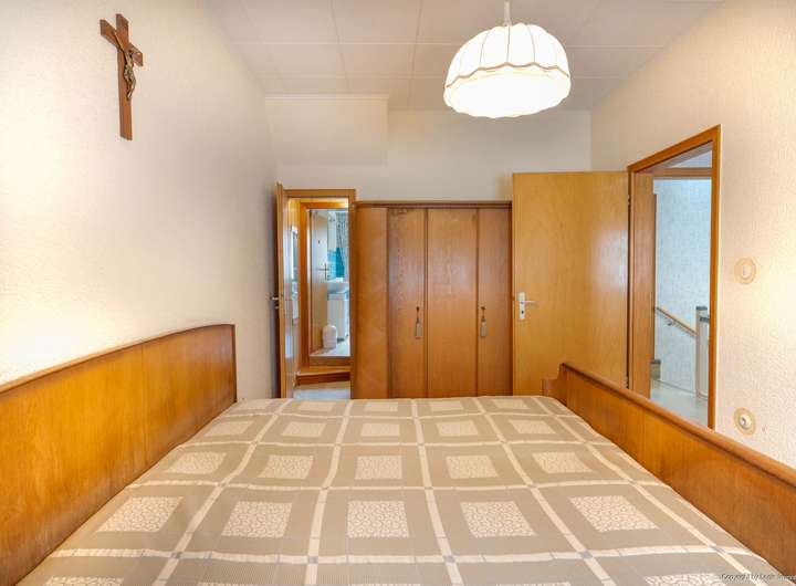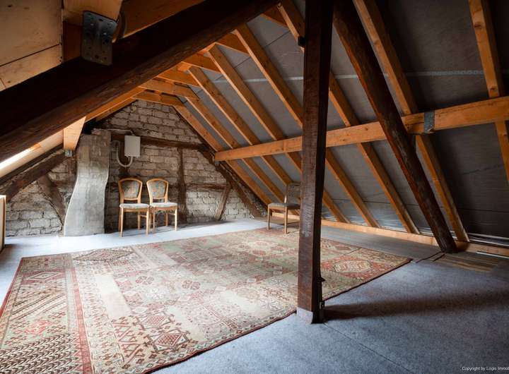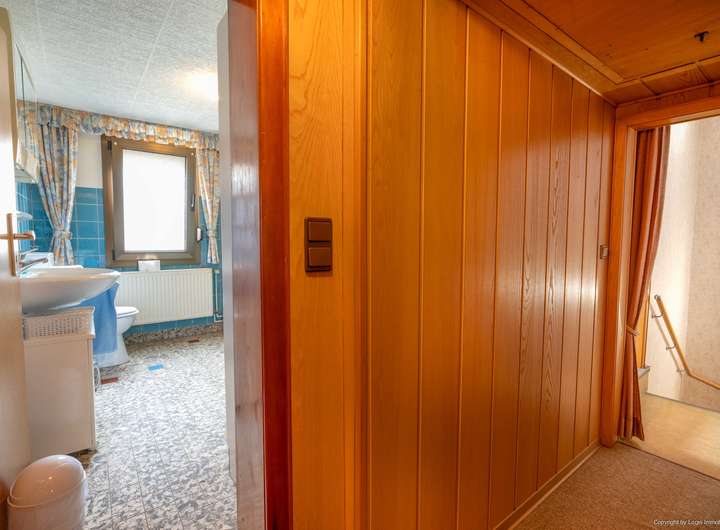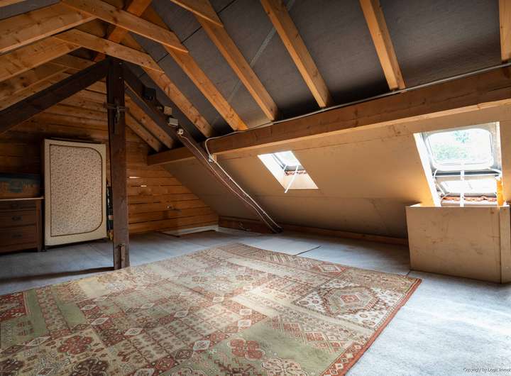 Das Obergeschoss bietet drei Schlafzimmer sowie ein Tageslichtbad mit Dusche und Badewanne. Über eine Einschubtreppe ist der Speicher zugänglich, der u.U. mit rund 35 m² Grundfläche weiteres Ausbaupotenzial bietet. Im Keller finden sich Heizungs- und Anschlussräume mit nahezu voller Stehhöhe sowie ein ehemaliger Kohlekeller.