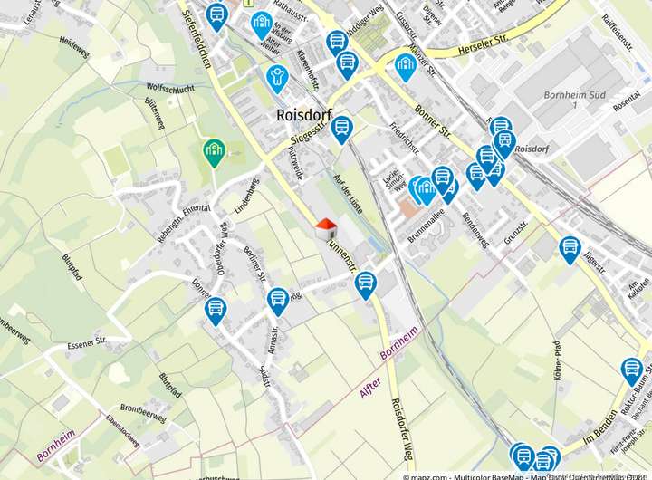 Der Stadtteil Roisdorf bietet eine ruhige Wohnlage mit dörflichem Charakter und gleichzeitig eine sehr gute Anbindung an die umliegenden Städte. Das Umfeld ist geprägt von Ein- und Mehrfamilienhäusern, kleineren Höfen sowie begrünten Flächen, die eine angenehme Wohnatmosphäre schaffen. Einkaufsmöglichkeiten für den täglichen Bedarf, Bäckereien, Apotheken und verschiedene Dienstleister sind bequem erreichbar. Auch Kindergärten und Schulen befinden sich in kurzer Distanz, was den Standort besonders für Familien attraktiv macht.