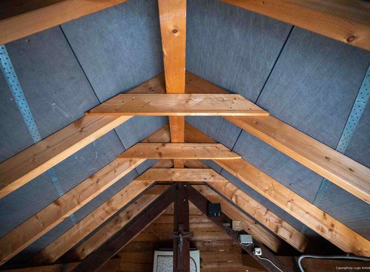 Der Dachstuhl wurde im Jahr 2005 vollständig erneuert und in Form eines Satteldachs mit grau lasierten Tonziegeln neu eingedeckt. Die Fassade besteht aus einer hinterlüfteten Kunststoffverkleidung in einem hellen Farbton, der Sockel ist dunkelrot abgesetzt.