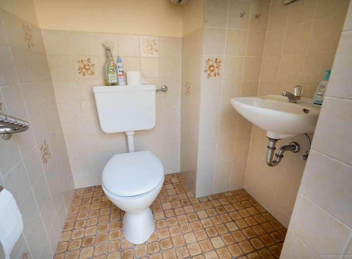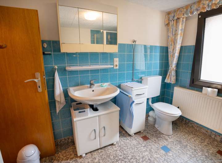 Die Beheizung und Warmwasseraufbereitung erfolgt über eine Gas-Heizwertkombitherme des Herstellers Junkers, die 2023 erneuert wurde. Die Sanitärausstattung entspricht einem einfachen Standard, mit Stand-WCs und funktionaler Gestaltung.