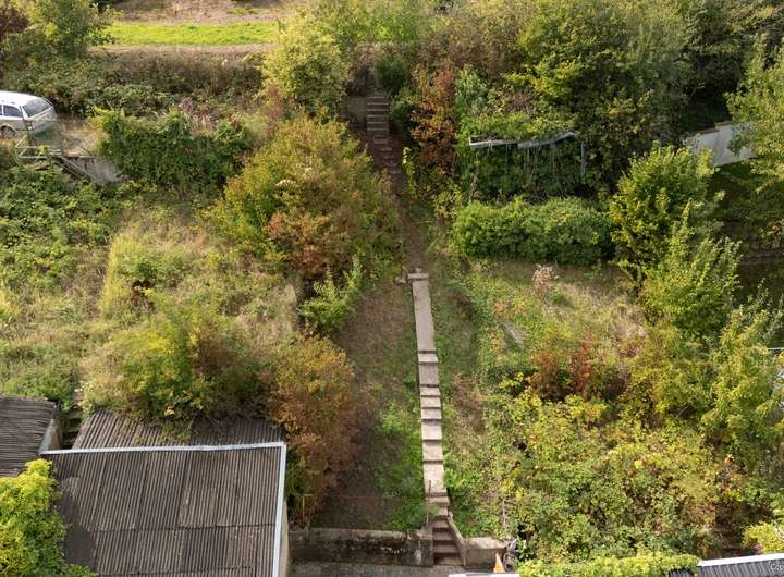 Der Garten in Südwest-Lage lässt sich durch seine Hanglage attraktiv terrassieren, etwa als Nutz- oder Ziergarten. Ein Stellplatz oder eine Garage ist nicht vorhanden, die ruhige Umgebung bietet jedoch ausreichend Parkmöglichkeiten.