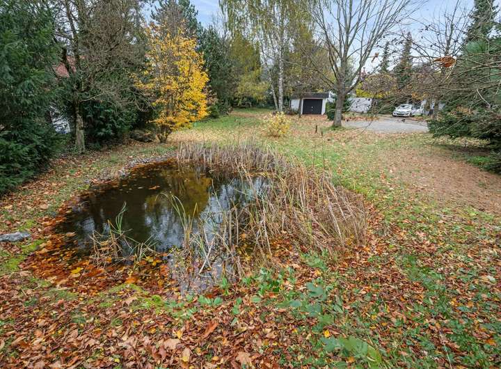 Das Grundstück ist aktuell mit einer Garage bebaut und überzeugt durch seine natürliche Bepflanzung, die bereits für eine grüne Wohlfühl-Atmosphäre sorgt. Ein idyllischer Kleinteich fügt sich harmonisch in das Bild ein und kann in die künftige Gartenplanung integriert werden – perfekt für alle, die Wohnen und Arbeiten im Einklang mit der Natur verbinden möchten.