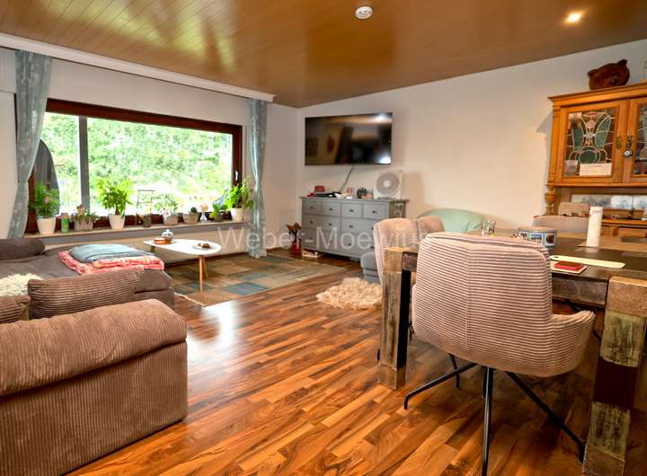 Die Erdgeschosswohnung bietet ca. 109 m² Wohnfläche und verfügt über 5 Zimmer, Küche, Bad, Gäste-WC, eine teilüberdachte Terrasse und den Garten.