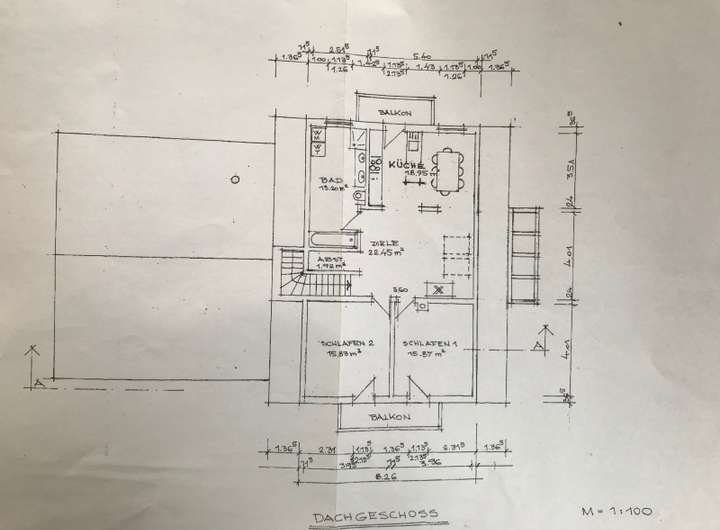 Tolle Dachgeschosswohnung mit 2 Balkone und Einbauküche (ohne Geräte).