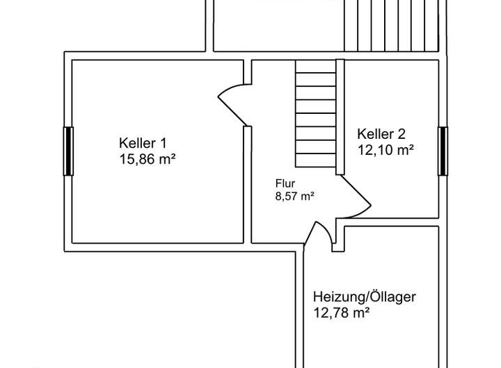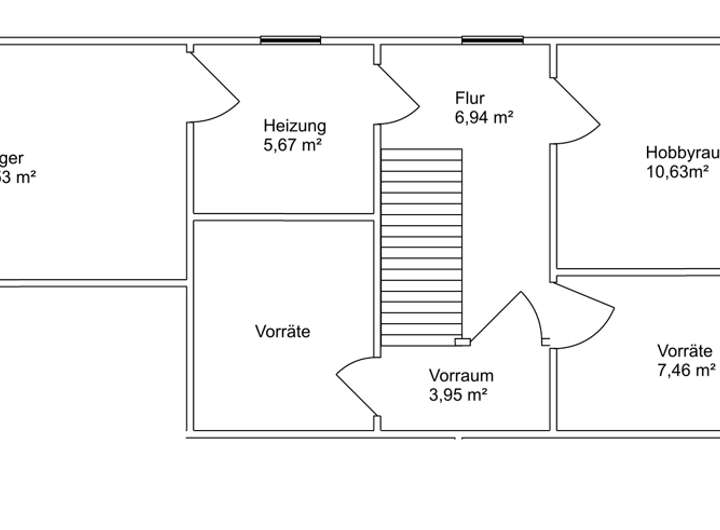 KG: Flur, Vorrat I, Vorrat II, Hobbyraum, Heizung