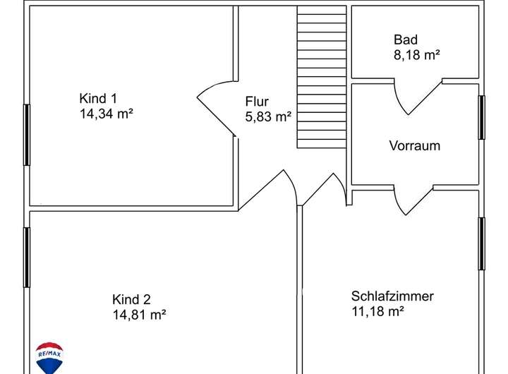 DG: Flur, Kind I, Kind II, Kind III mit Zugang zum Bad