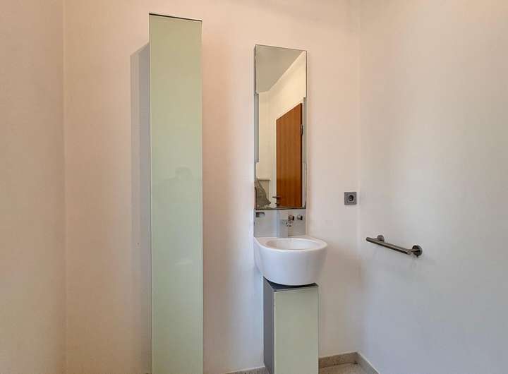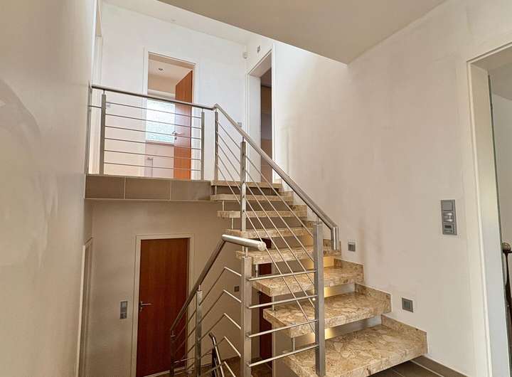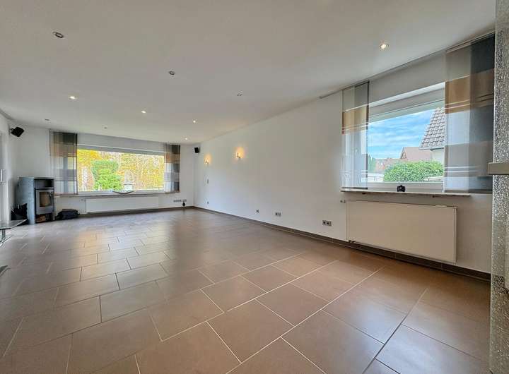 Die Bodenbeläge bestehen überwiegend aus hochwertigen Fliesen, die eine ansprechende und pflegeleichte Wohnatmosphäre schaffen. Dank der Rollläden lässt sich das Tageslicht flexibel regulieren und sorgt zugleich für zusätzlichen Komfort.