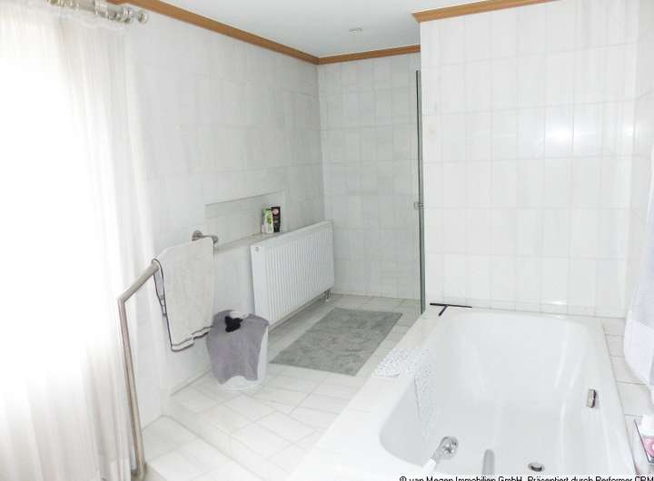 Die zu verkaufende Immobilie besitzt im 1.OG insgesamt 4 Schlafräume, 1 Abstellraum, den Flurbereich, das Hauptbad und ein Kinder- / Gästebad. Sämtliche Schlafräume sind zwischen ca. 16,40 qm und ca. 16,92 qm groß. Die Schlafräume sind mit Teppich ausgelegt. Jeder Schlafraum besitzt mindestens 1 Holzsprossenfenster mit Isolierverglasung. Das Kinderbad ist von 2 Kinderzimmern aus zu begehen. Dieses Bad ist im Kalenderjahr 2021 komplett saniert worden. Es ist eine Dusche nebst Glastüre eingebaut. Der Boden ist mit großformatigen grauen Bodenfliesen ausgelegt. Die Wandflächen sind teilweise mit sandfarbenen Fliesen ausgestattet. Ansonsten sind die Wände verputzt und weiss gestrichen. Das Bad besitzt ein Sprossenfenster mit Isolierverglasung. Das große Waschbecken ist mit Untertisch ausgestattet. Das eigentliche Hauptbad ist vom Eltern- und vom 3. Kinderzimmer aus zu begehen. Der Toilettenbereich mit Bidet ist separiert und mit einer Glastüre versehen. Im Hauptbad sind weiss / graue Boden- und Wandfliesen verlegt. Zur ordnungsgemäßen Belüftung befinden sich im Bad 2 Fensterelemente mit Isolierverglasung. Die Badewanne und die Dusche mit Glastüre sind über zwei Stufen vom restlichen Bereich abgetrennt. Das Doppelwaschbecken ist mit großem Spiegel versehen. Vom Flurbereich aus ist noch ein kleiner Abstellraum von ca. 2.29 qm zu betreten. Über die mit Putz eingefasste Stahbetontreppe mit Marmorbelag gelangt man ins Erdgeschoss. Hier ist die Diele mit Garderobe, das Gäste-WC, das TV-Zimmer, das Esszimmer, der Wohnbereich, die Küche und der Abstellraum vorhanden. Das Esszimer ist mit ca. 31,69 qm der größte Raum des Wohnhauses. Zur linken Giebelseite ist ein Erker mit 3 bodentiefen Fensterelementen integriert. Durch die Vielzahl der Fenster gelangt viel Tageslicht ins Objektinnere. Die Einbauschränke sind genauso wie die Eichetüren weiss lackiert worden. Im Esszimmer ist ein offener Kamin vorhanden, welcher für den gelegentlichen Gebrauch zugelassen ist. Die letzte Prüfun...
