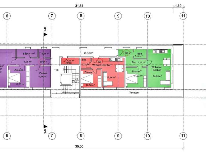 Wohnung 10 = 63,65 m2 + 10,76 m2 (21,53 m2) Terrasse